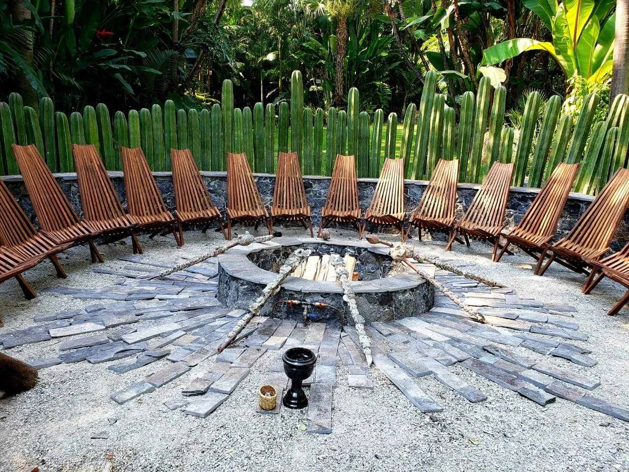 Nikan-ka, located in Cuernavaca—just south of Mexico City and nestled in the Tepozteco mountains—is one of those places that feels like a deep exhale the moment you arrive. Known as the City of Eternal Spring, it’s lush, warm, and wildly alive, with vibrant greenery, birdsong, and that steady, soul-soothing calm that makes you slow all the way down. Our retreat home sits on a full acre of tropical gardens with hidden paths, streams, ponds, and exotic birds, completely gated and private so once you’re here, the world falls away. The space blends sacred and luxurious with nine bedrooms across four buildings, multiple indoor and outdoor kitchens for long communal meals, a rooftop yoga studio and yoga chalet, ceremony and gym spaces, a traditional Aztec temazcal, plus a heated pool and jacuzzi for deep rest and integration. It’s the kind of place where your body softens, your spirit opens, and clarity shows up without being forced.